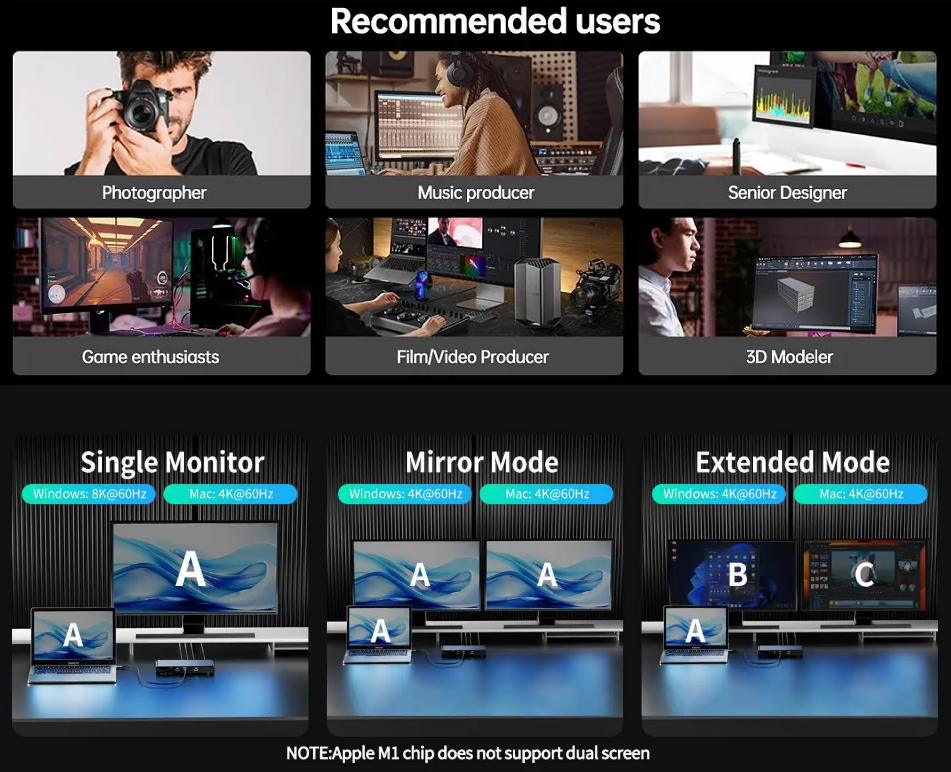 Its single HDMI 8K@60Hz video output interface takes the visual experience to a new height. With an ultra-high resolution of 8K, it delivers incredibly detailed, lifelike images. Whether you're immersed in a breathtaking movie world or focused on meticulous design work, it offers an unprecedented visual feast.